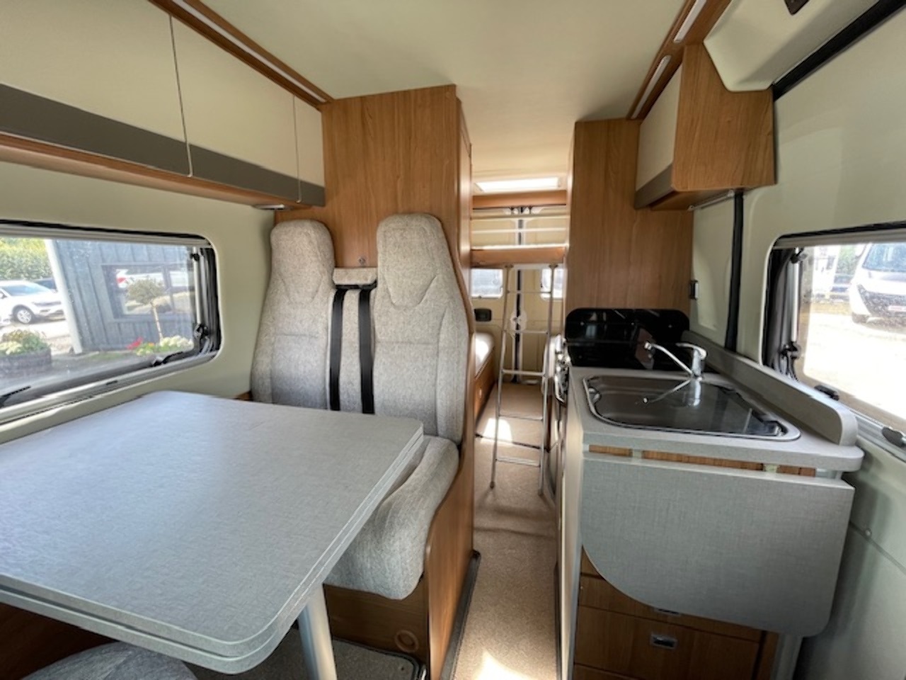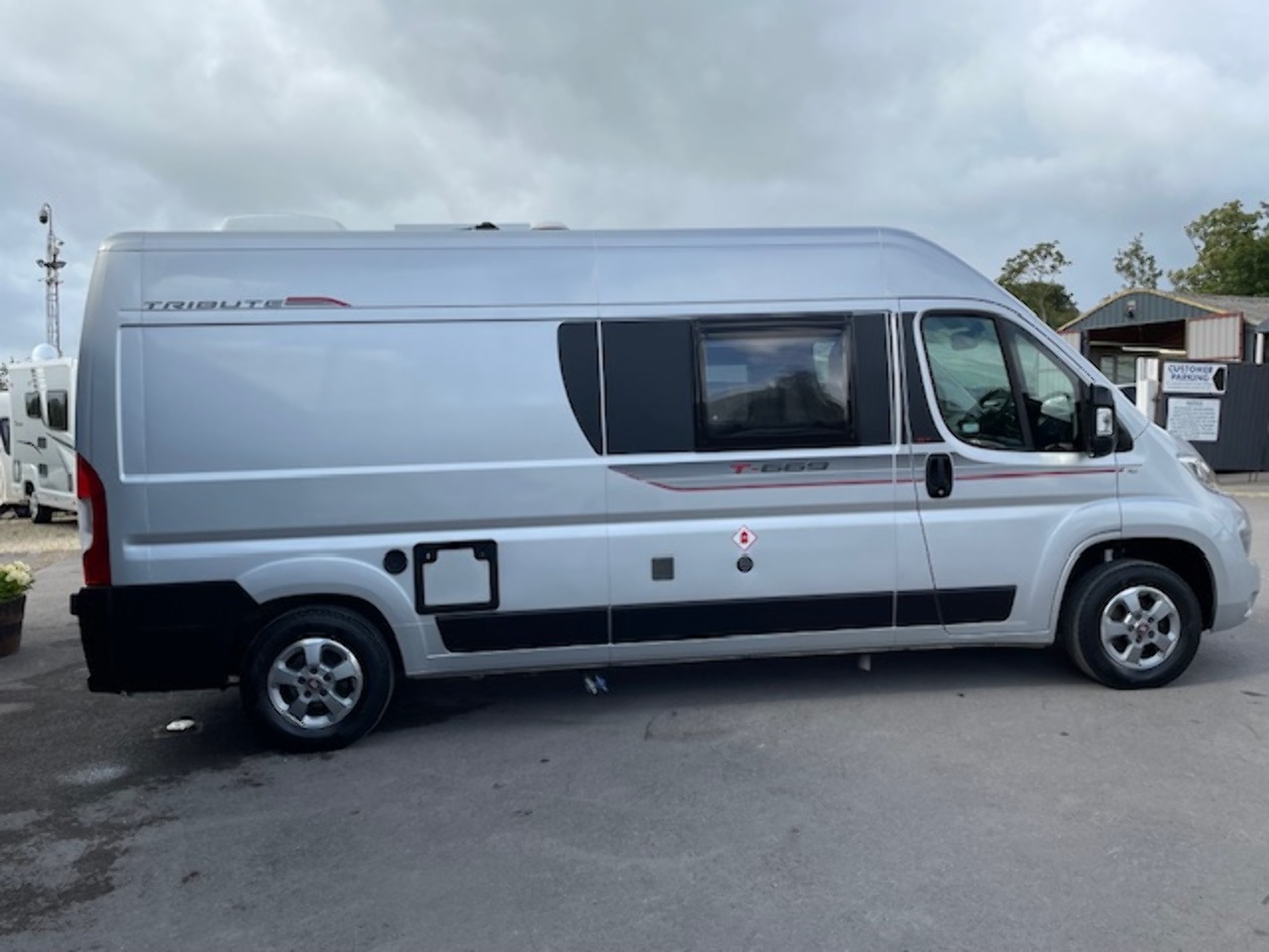 CSV are proud to present this lovely Auto-Trail Tribute 669 Campervan. This clever layout makes it possible to sleep 4 with the lounge conversion double bed and removeable double bunk bed above. There's also a separate dinette area at the front, which with the front seats swivelled around and extendable table can comfortably seat 4 people. The fully equipped kitchen is located in the centre and consists of a 3 burner hob, oven, sink and fridge. Opposite the kitchen is a washroom which includes a toilet with electric flush, hot/cold shower, wash basin and bathroom storage.