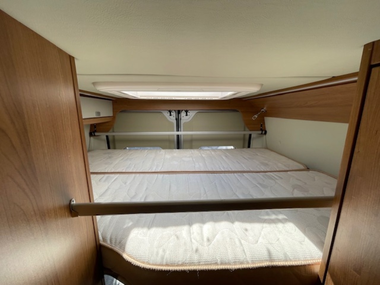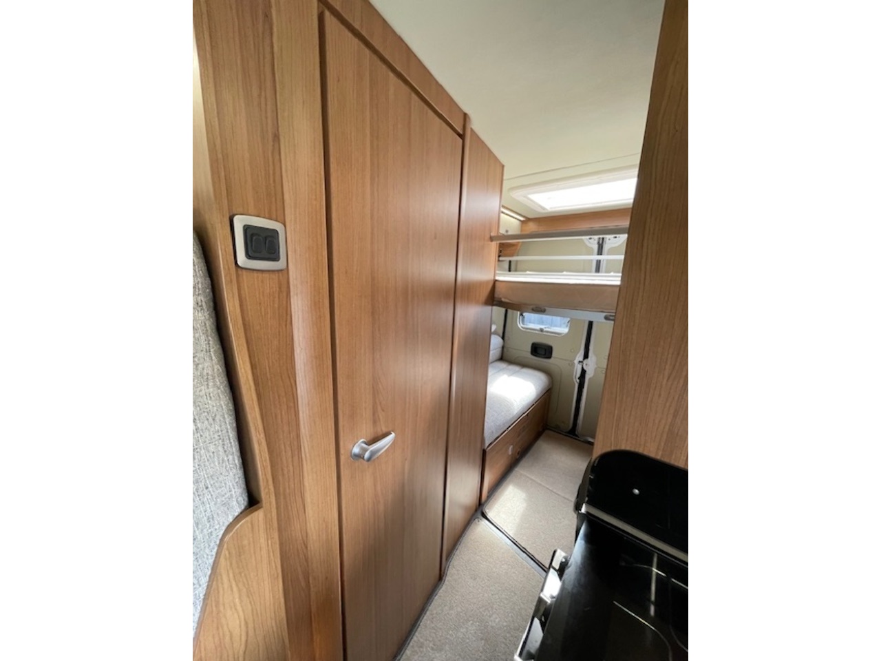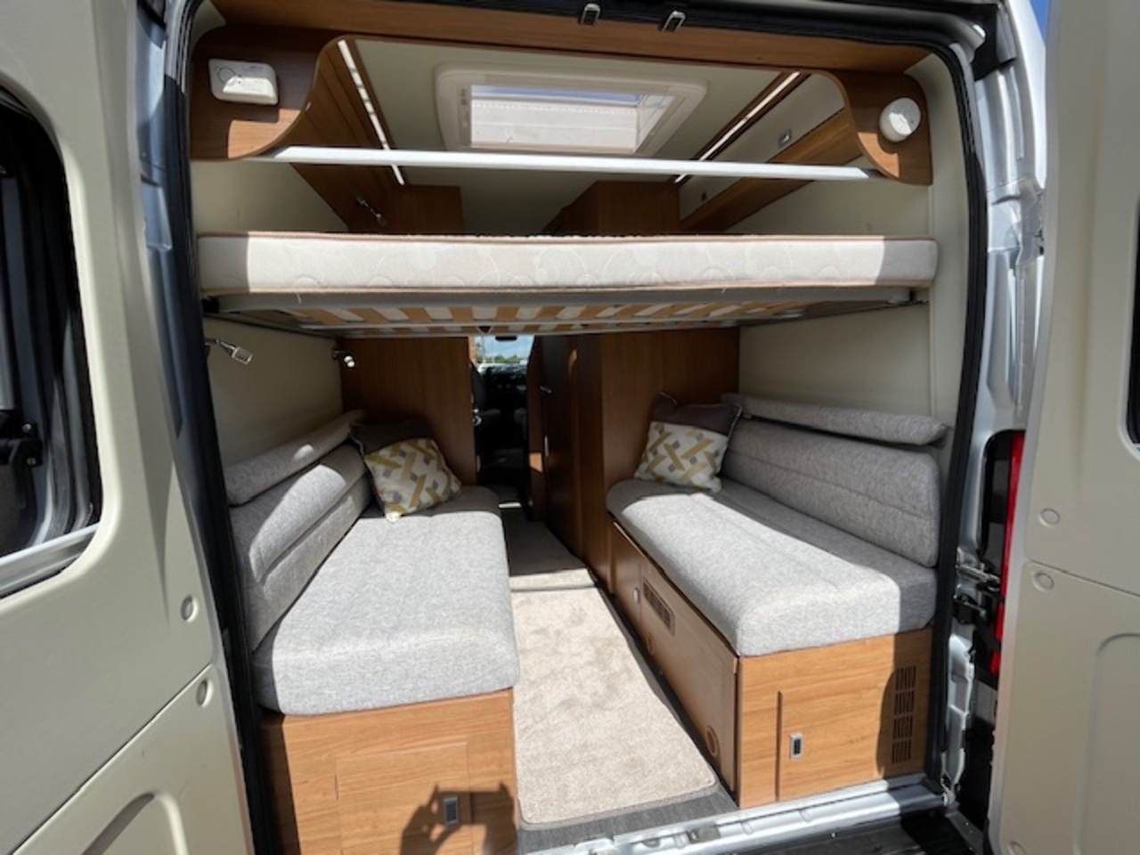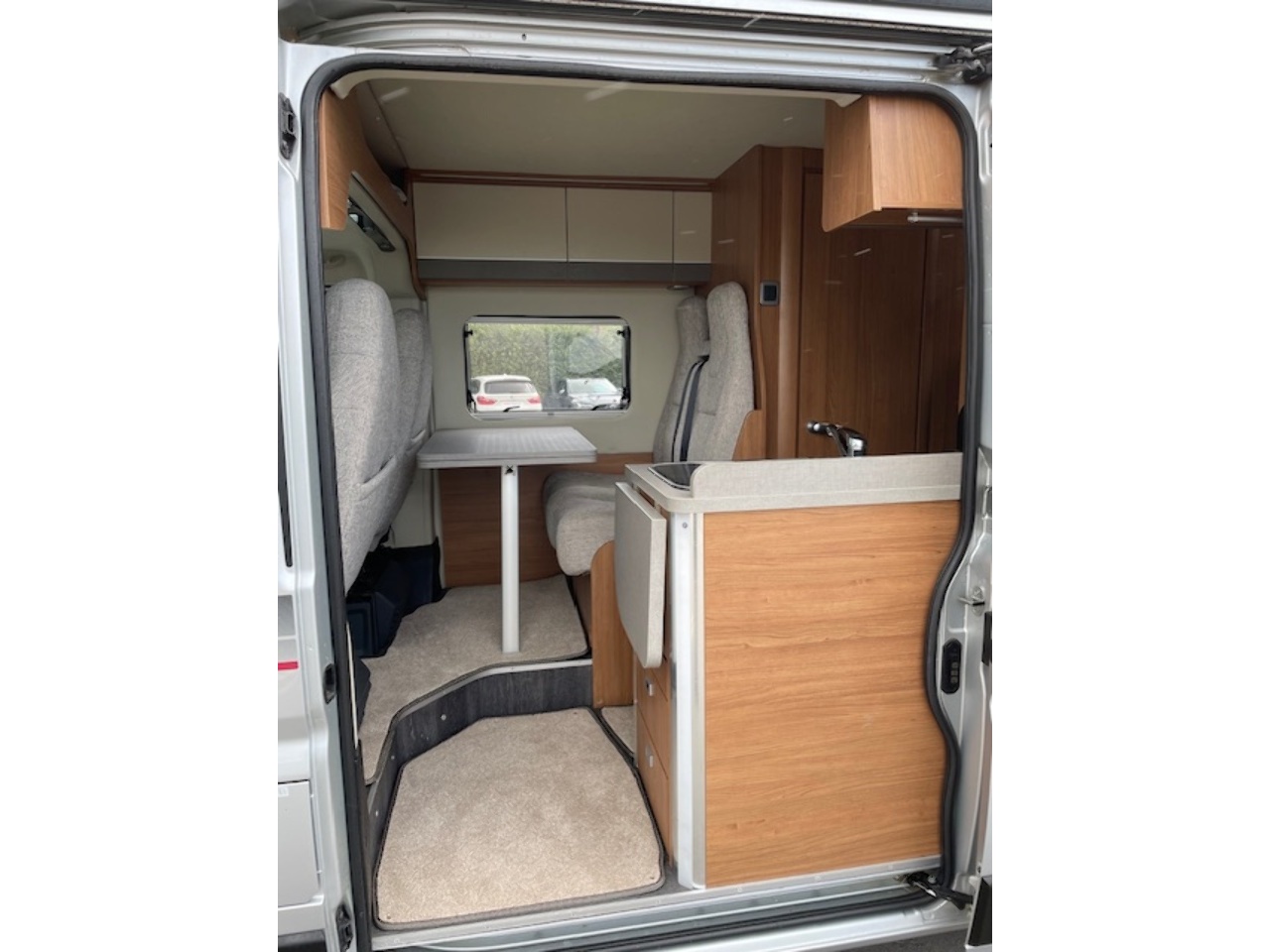This well kept camper also benefits from a reversing camera with a mirror mounted screen. There is also an onboard fresh/waste water tank, underslung gas tank (refillable), blown air heating system and water boiler. It even has a solar panel already fitted to increase it's off-grid capability.