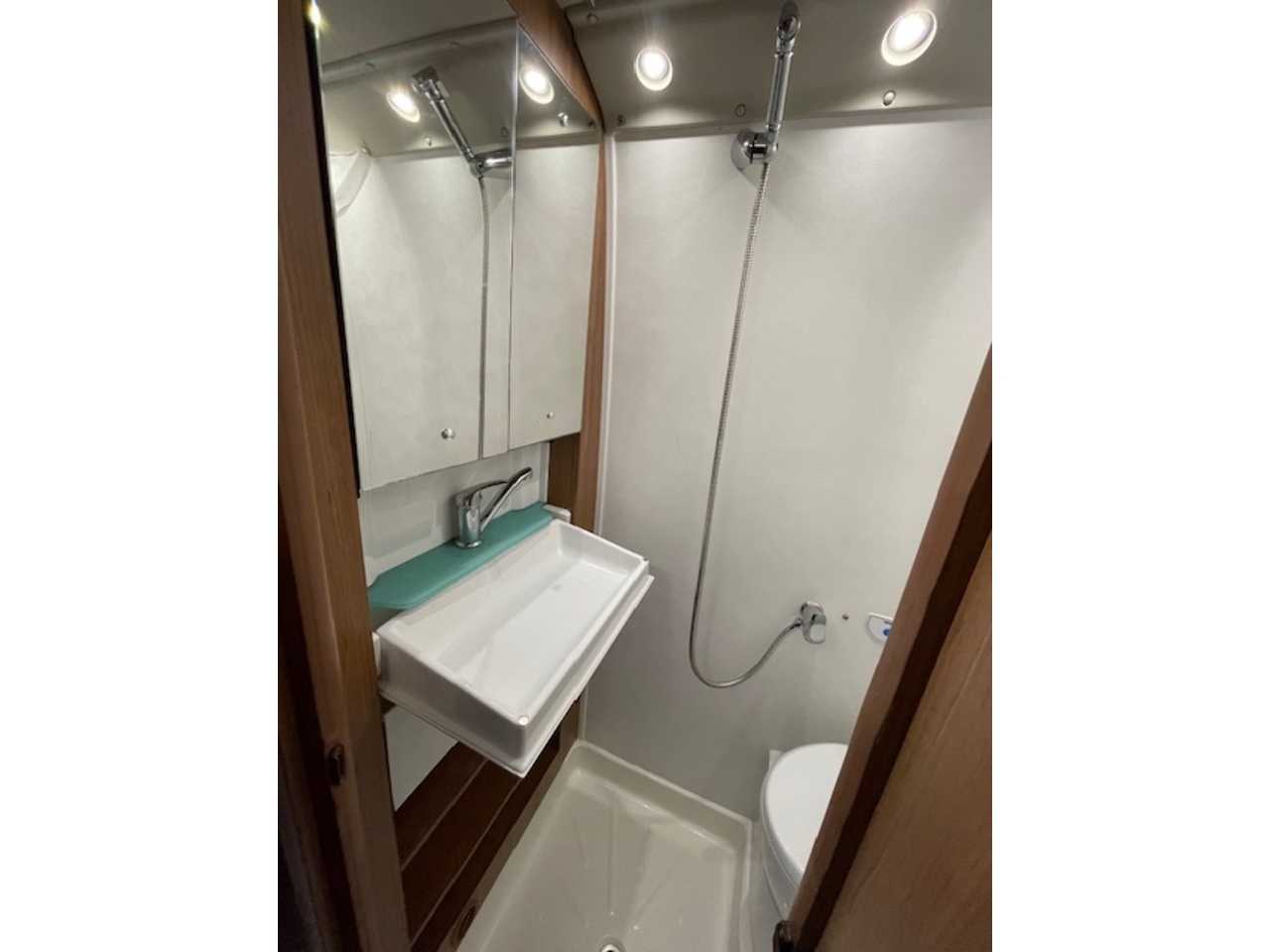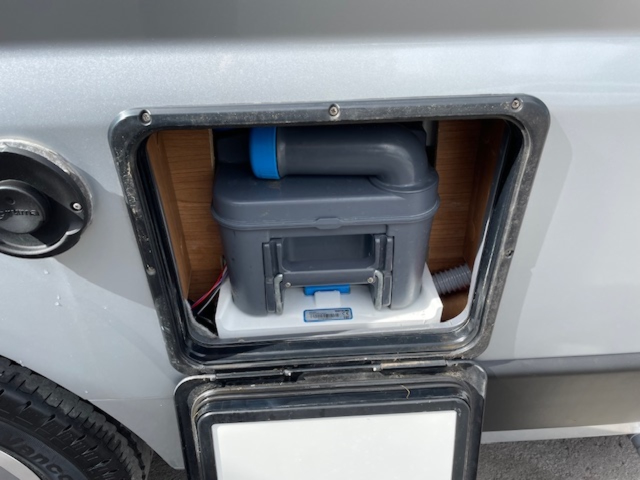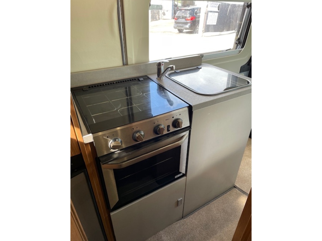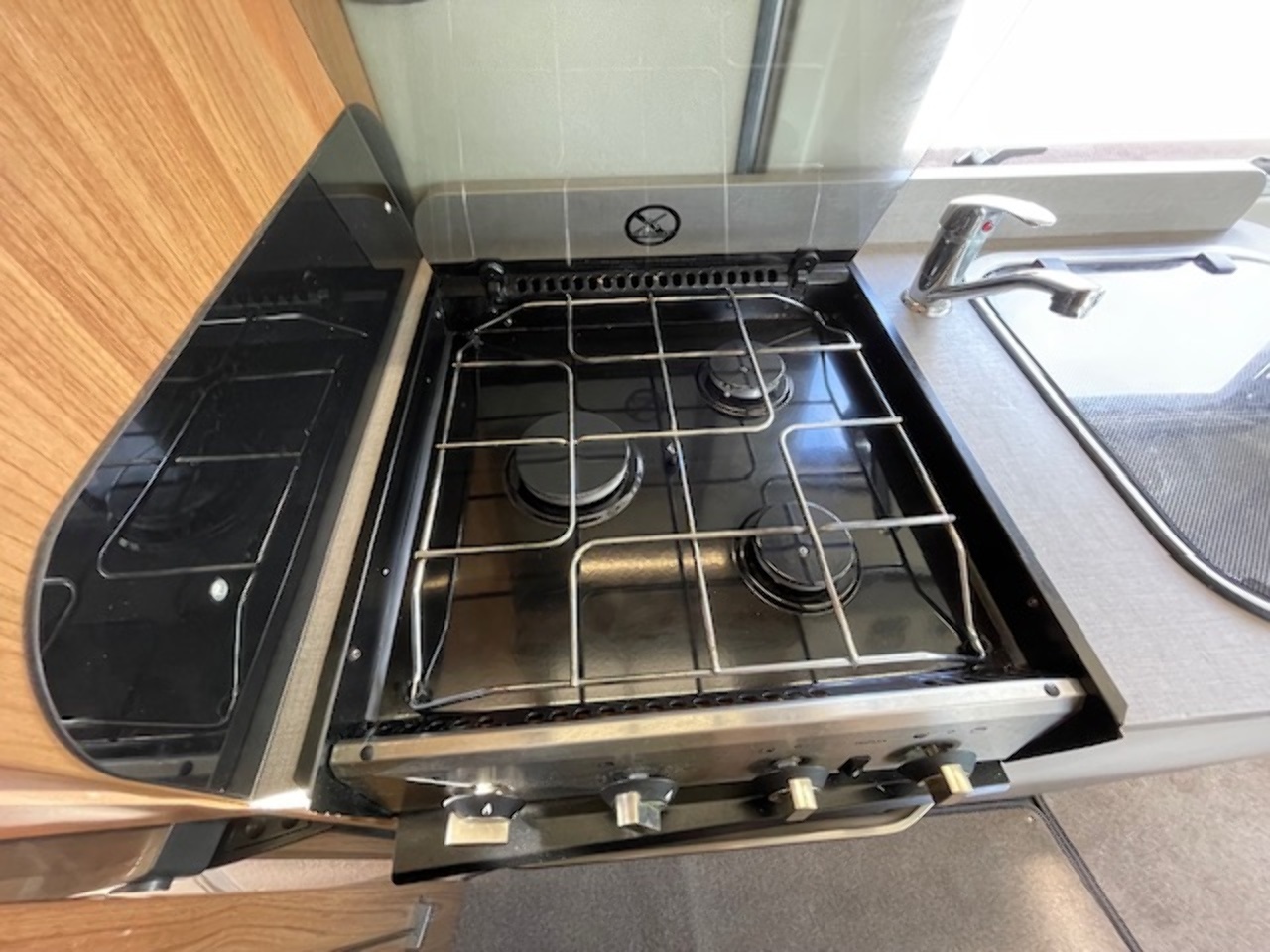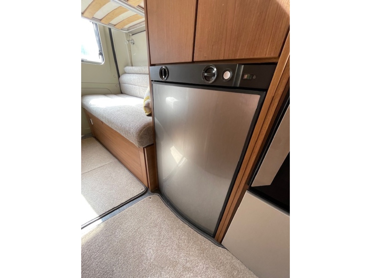 This well kept camper also benefits from a reversing camera with a mirror mounted screen. There is also an onboard fresh/waste water tank, underslung gas tank (refillable), blown air heating system and water boiler. It even has a solar panel already fitted to increase it's off-grid capability.